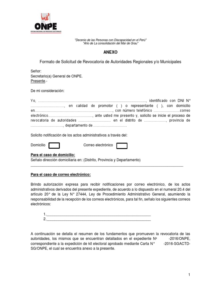 Formato Solicitud Revocatoria Docx Gobierno Politica